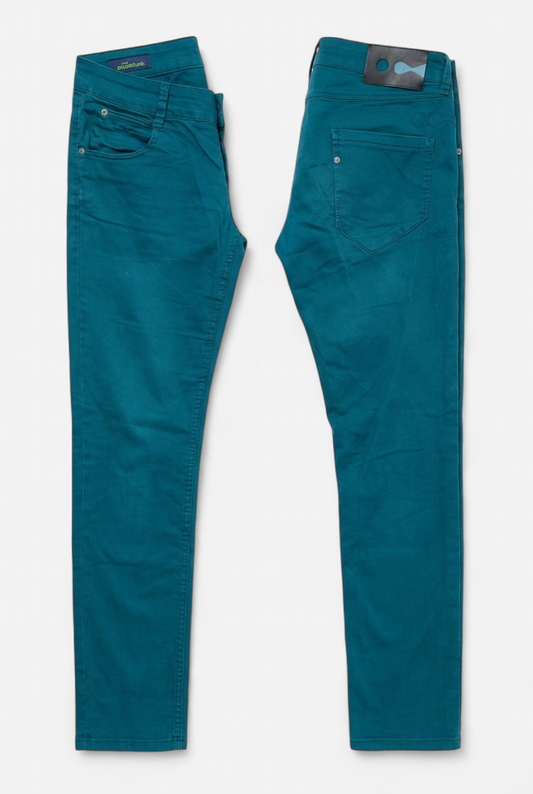 TRÈS BON ÉTATStraight denim-style trousers in petroleum blue - SIZE 38