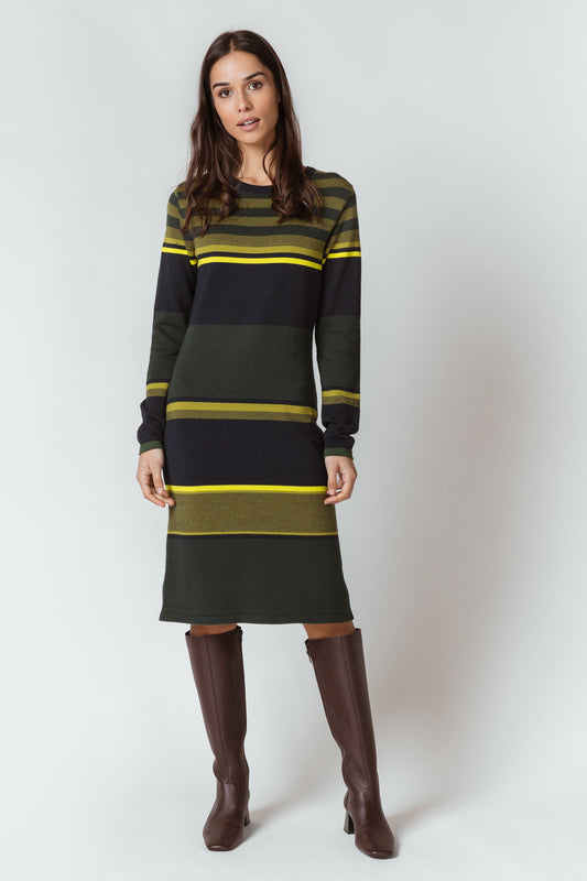 Regular price €27,00Regular priceUnit price / perSale price €27,00Dress wavy pattern in funky orange/pink on brownish green - SIZE 1