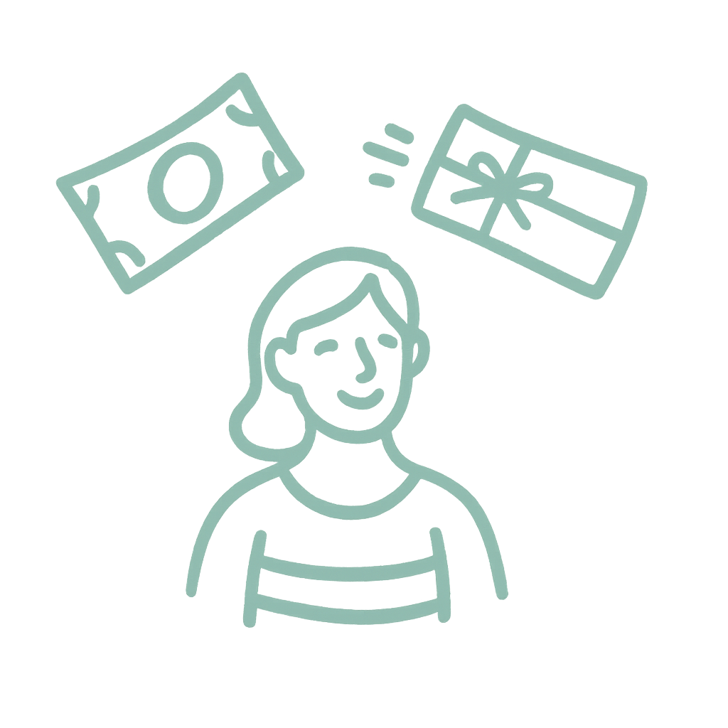 Receive your choice of a bank transfer or a gift card to use online at SKFK