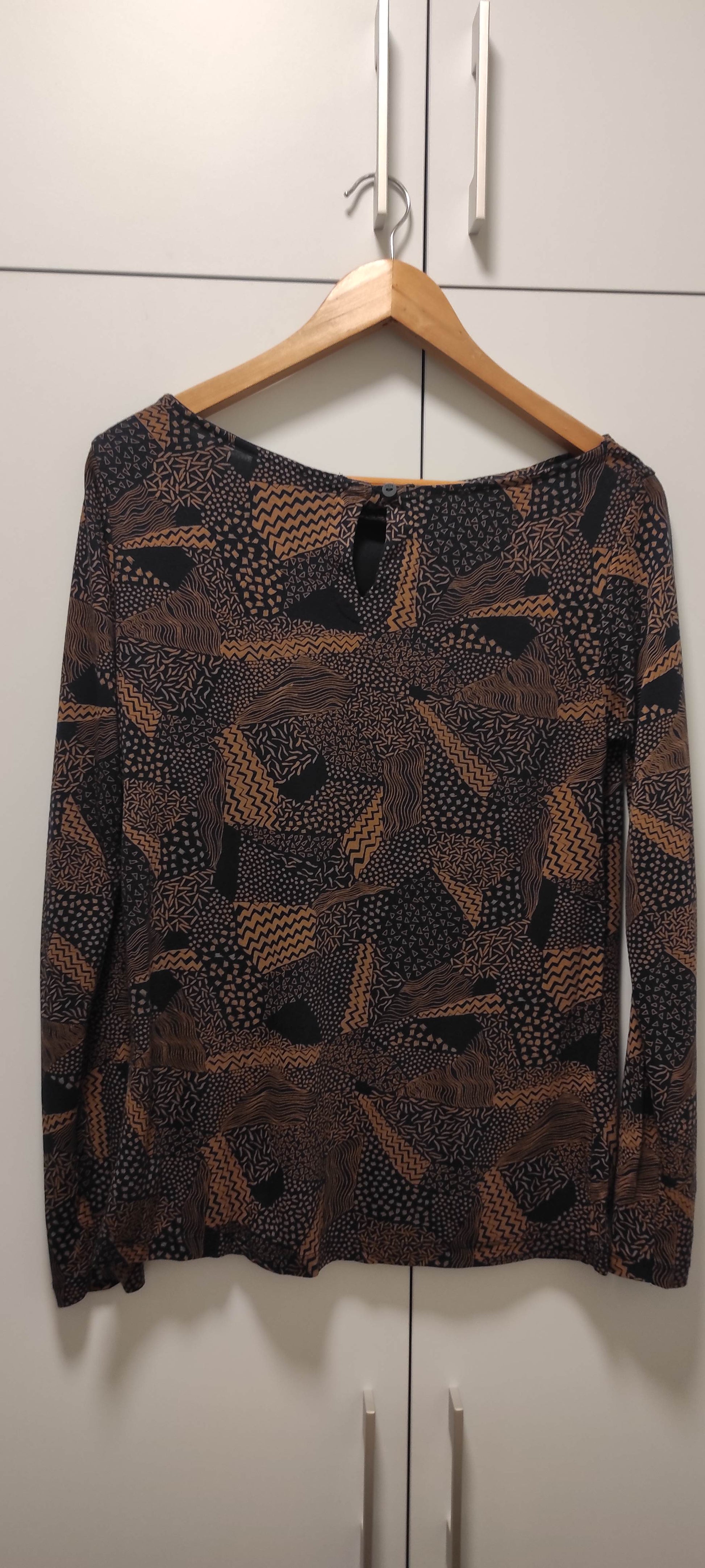 Rarely worn. T-shirt with draped neckline and button closure in the back.