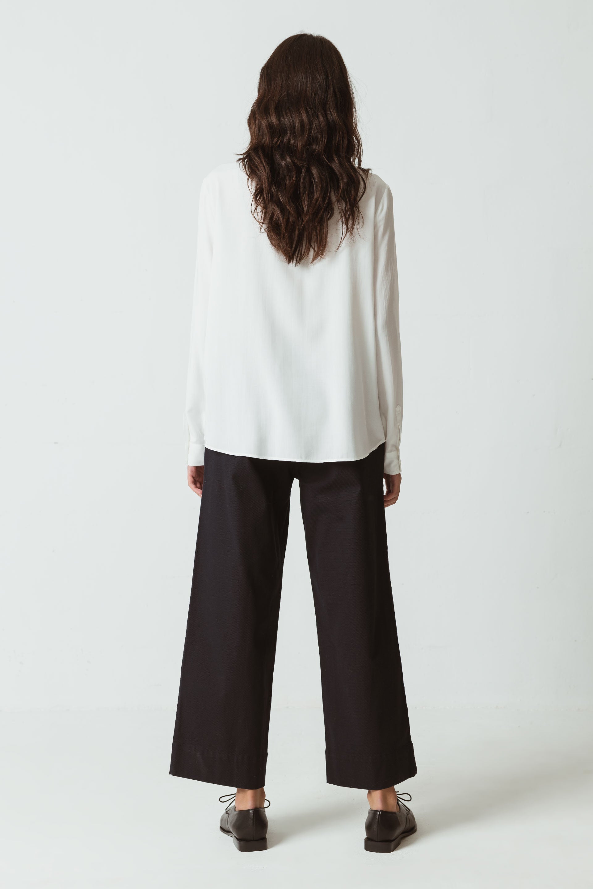 Classic shirt in soft LENZING™ ECOVERO™ viscose with button closure and cuffs and deep flap pockets on the chest. White.