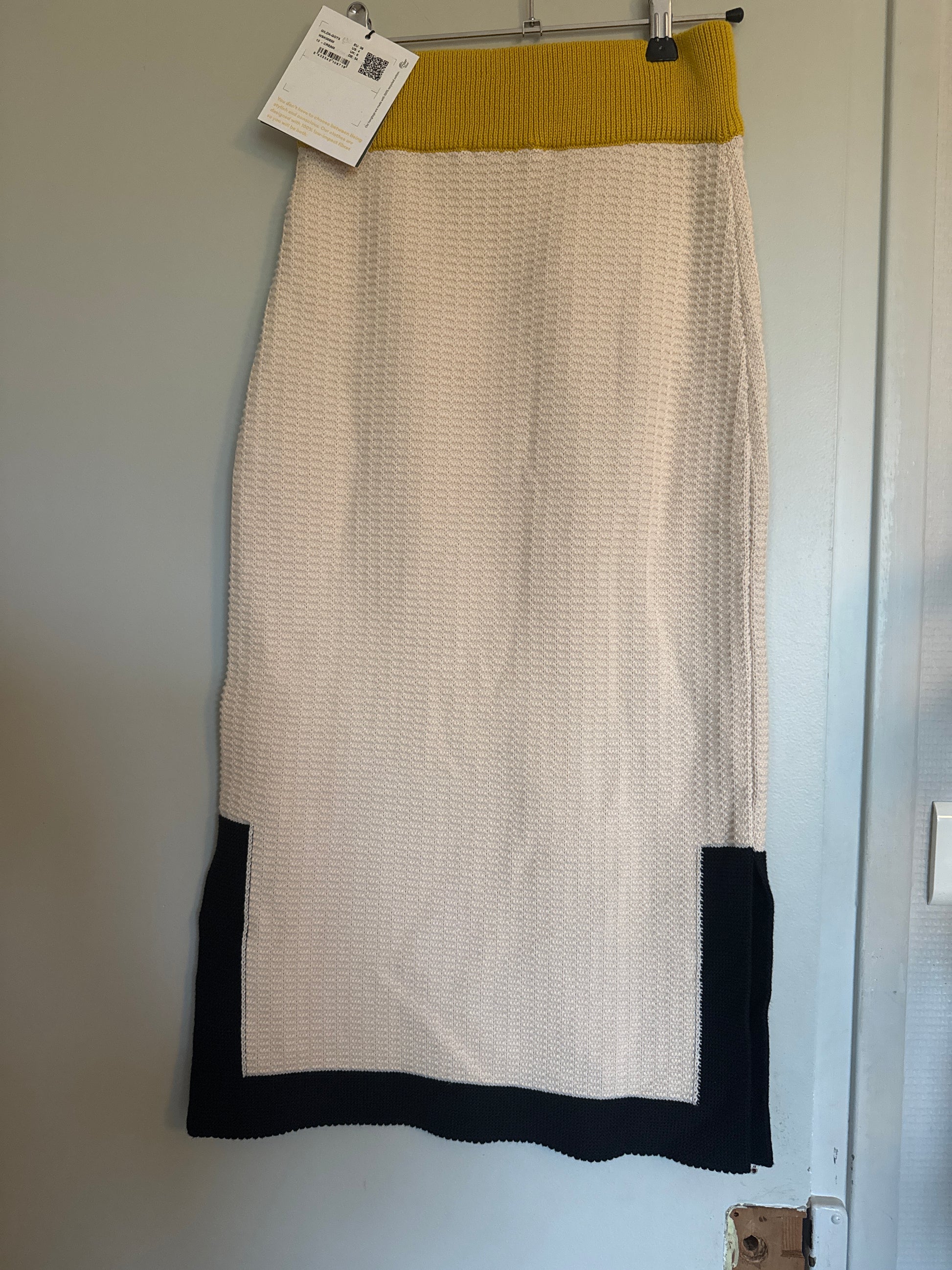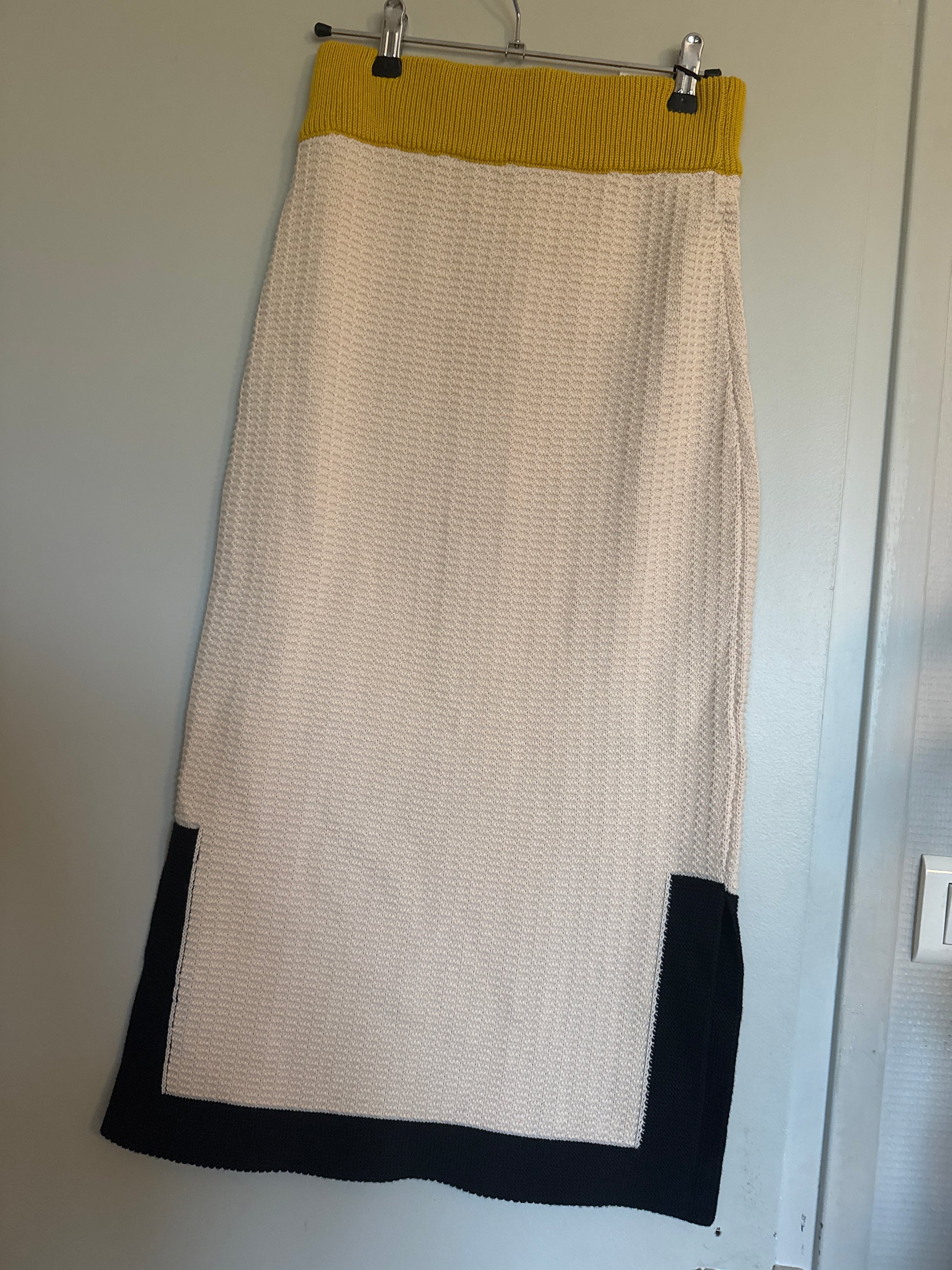 Falda tubo de punto de largo medio con cinturilla elástica. Una silueta elegante y cómoda. Algodón orgánico con certificación GOTS.