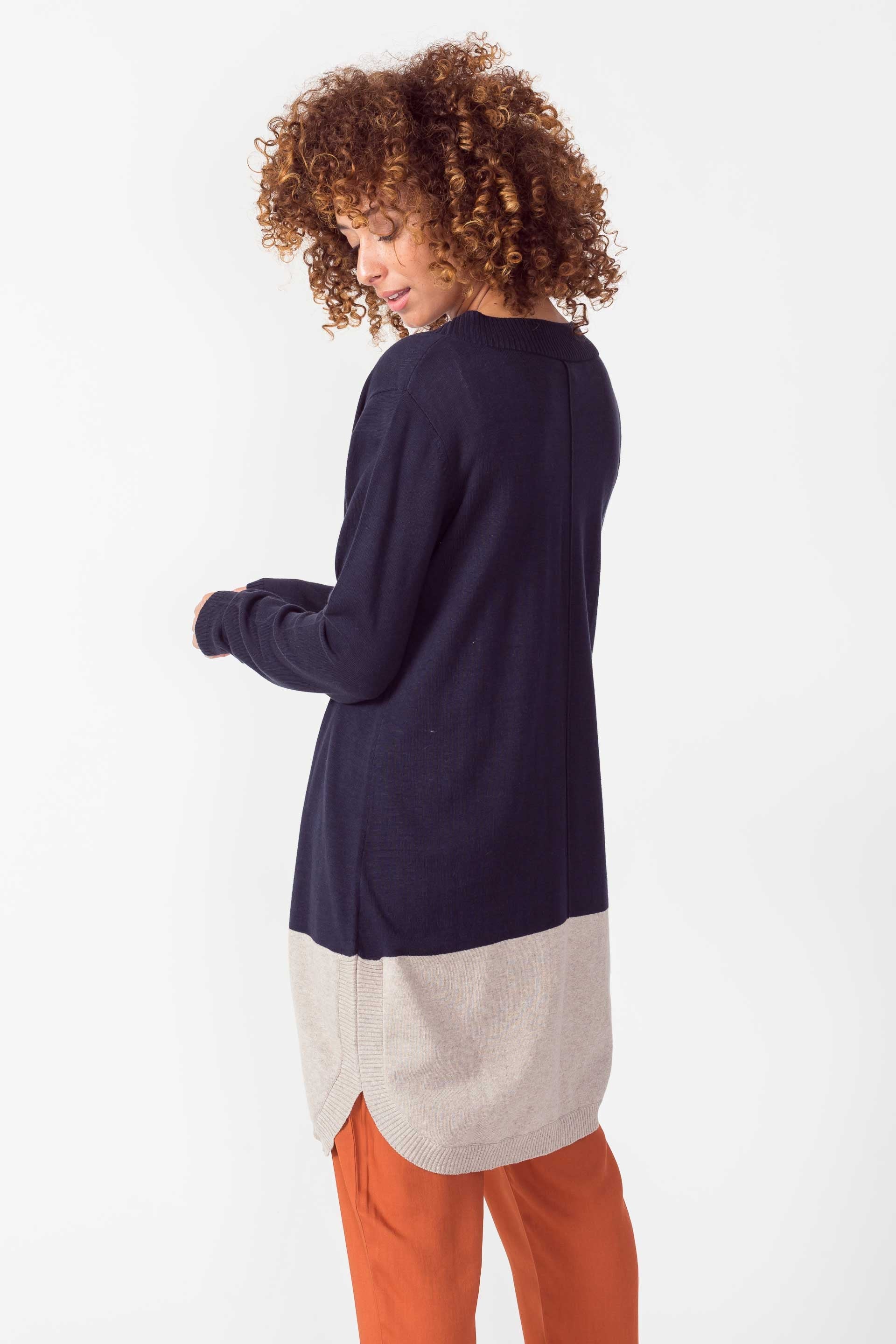 Cárdigan largo de textura suave para las frescas noches de verano. Fabricado con algodón orgánico, preserva los ecosistemas y requiere menos agua que el algodón tradicional.