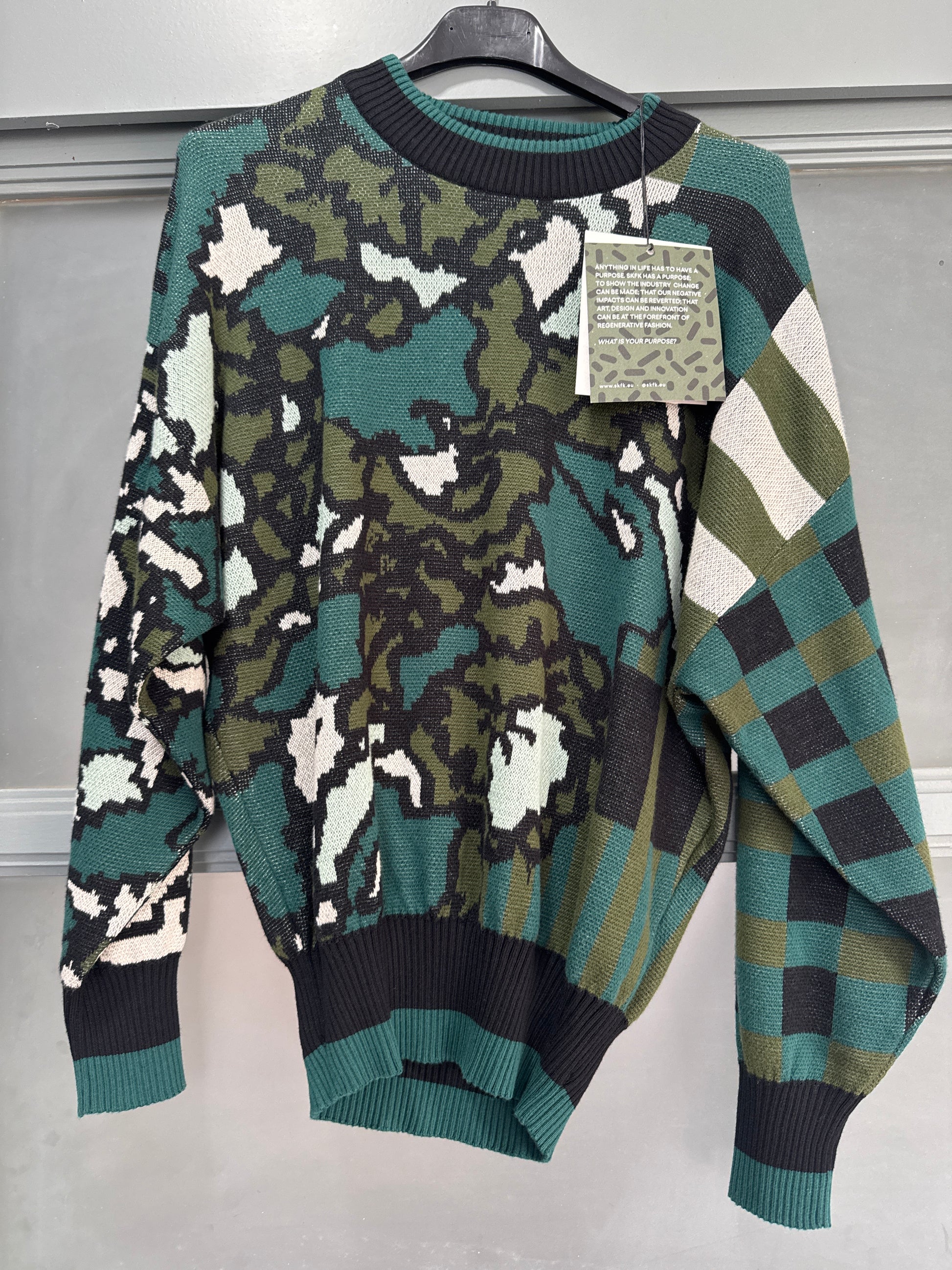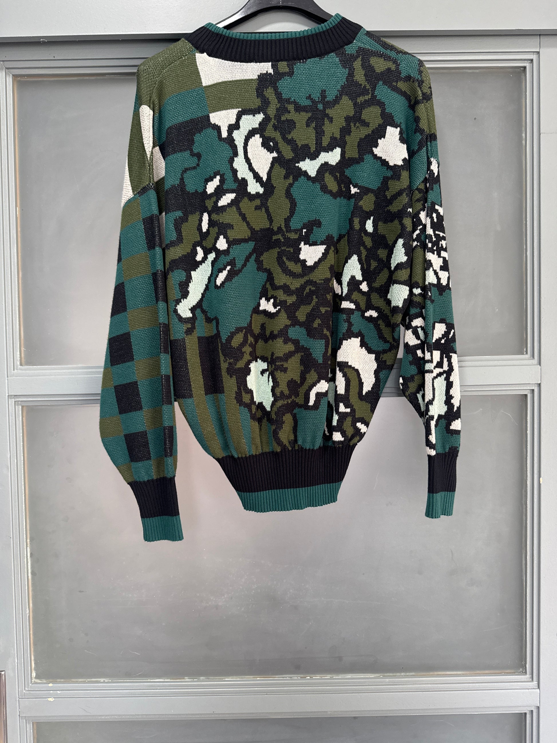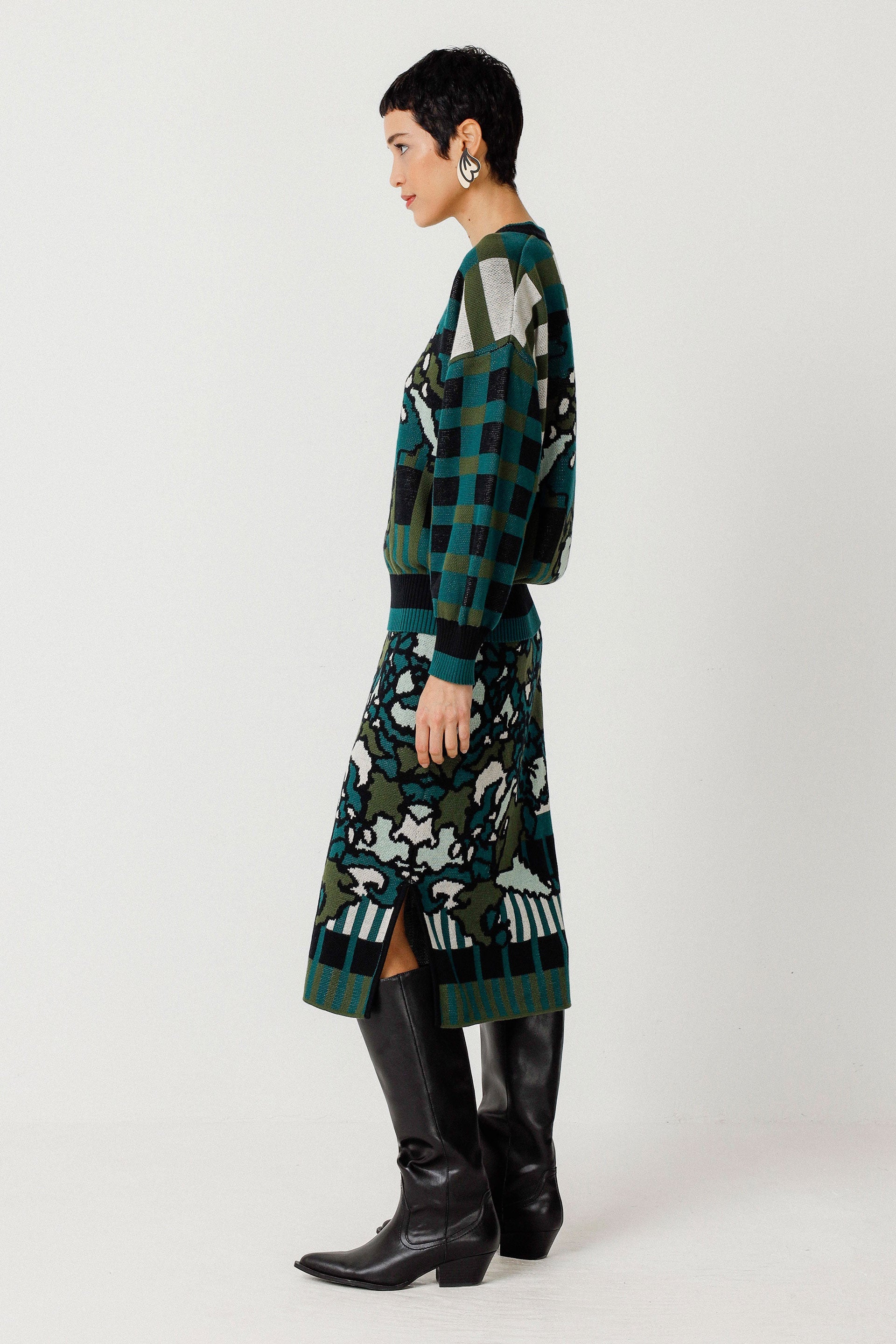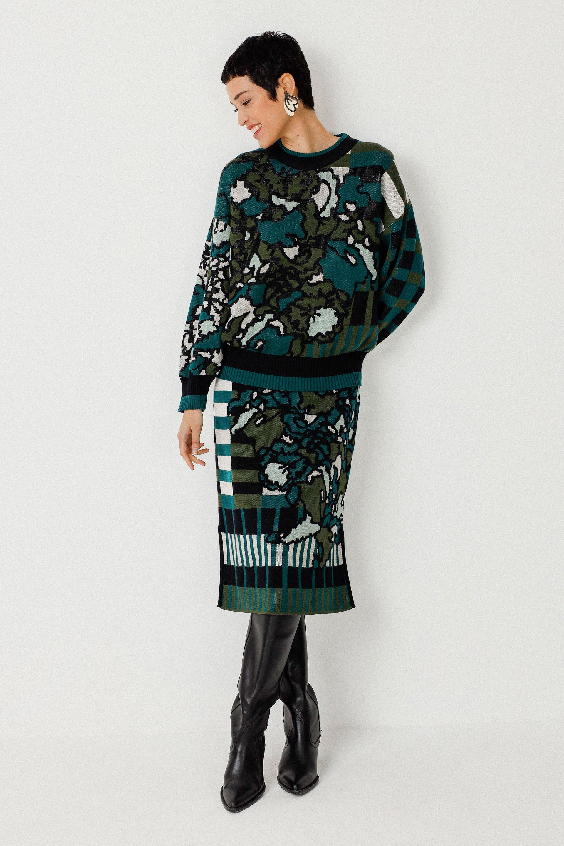 Suéter estructurado de punto jacquard con mangas murciélago, cuello redondo y puños acanalados. Una prenda tan cómoda como elegante. Algodón orgánico con certificación GOTS.
