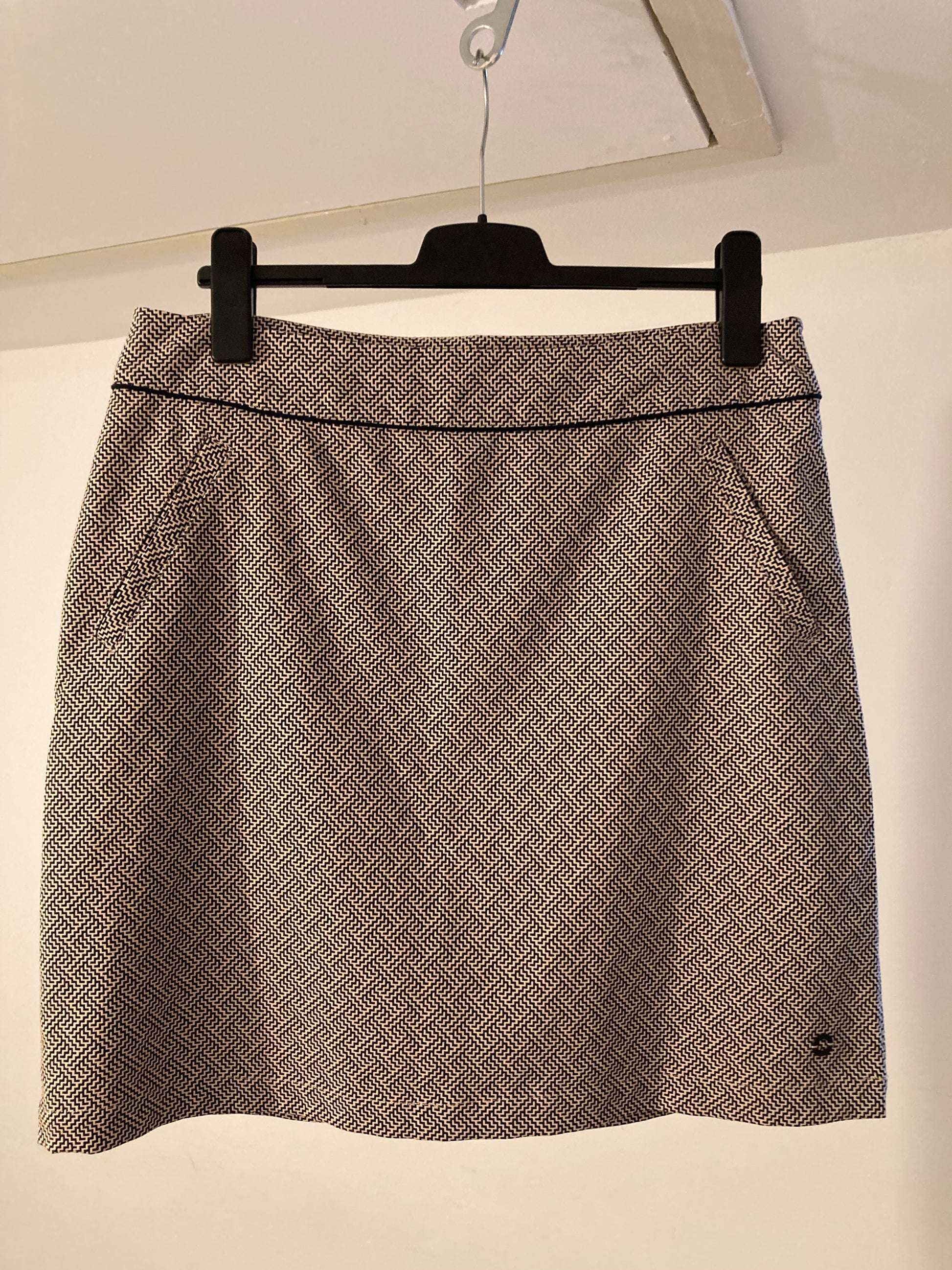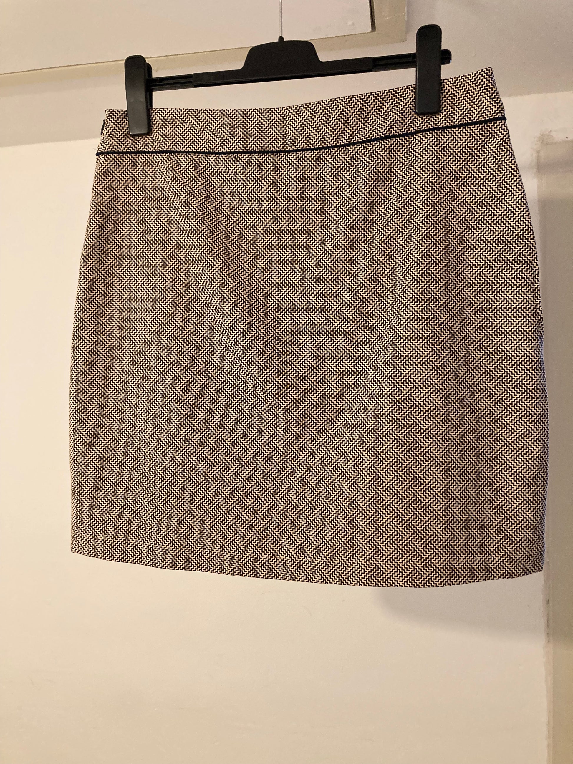 Falda elegante con estampado jacquard - usada solo unas pocas veces - Bolsillos laterales cosidos - Falda de corte A ligeramente acampanada - Largo justo por encima de la rodilla - Cremallera lateral invisible - Totalmente forrada