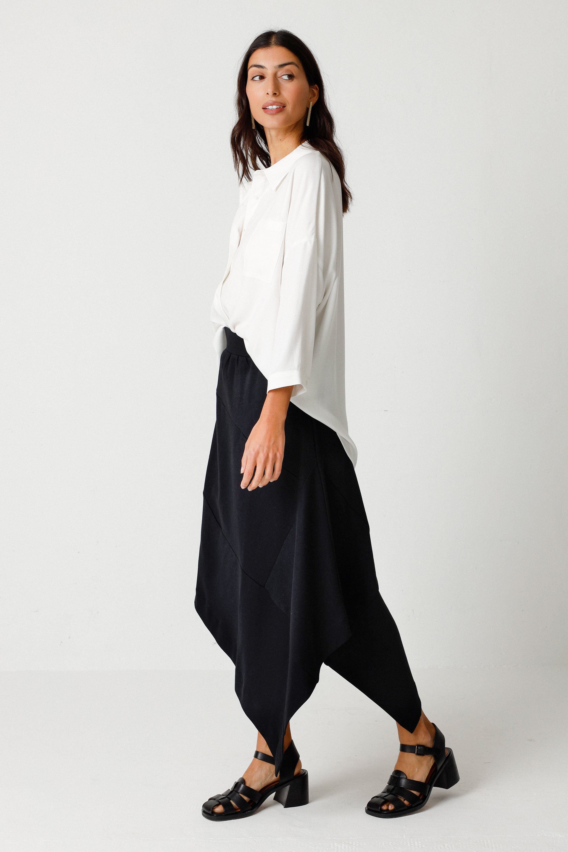 Chemise élégante avec une coupe plus longue dans le dos, un col chemise classique, des manches 3/4 et une fermeture boutonnée devant. Blanc. Made in CHINA